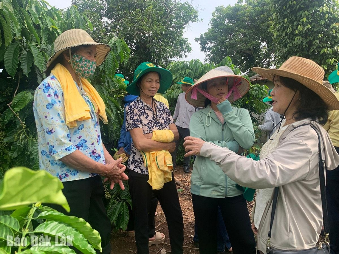 Nhà khoa học về vườn, cùng nông dân huyện Ea Kar trao đổi quy trình canh tác cà phê thông minh