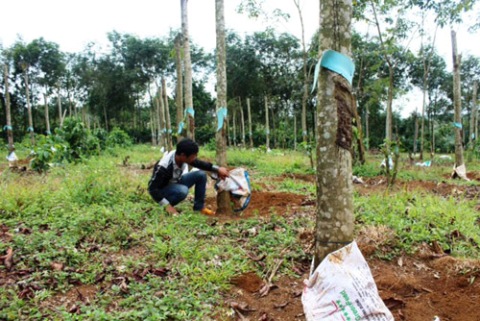 Người dân trồng tiêu trên chính gốc cây cao su.