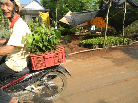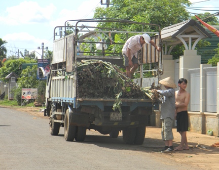 Để đáp ứng nhu cầu trồng tiêu, hàng ngày có vài chục chuyến xe chở cây gòn từ khắp nơi đổ về cung cấp cho các thương lái.