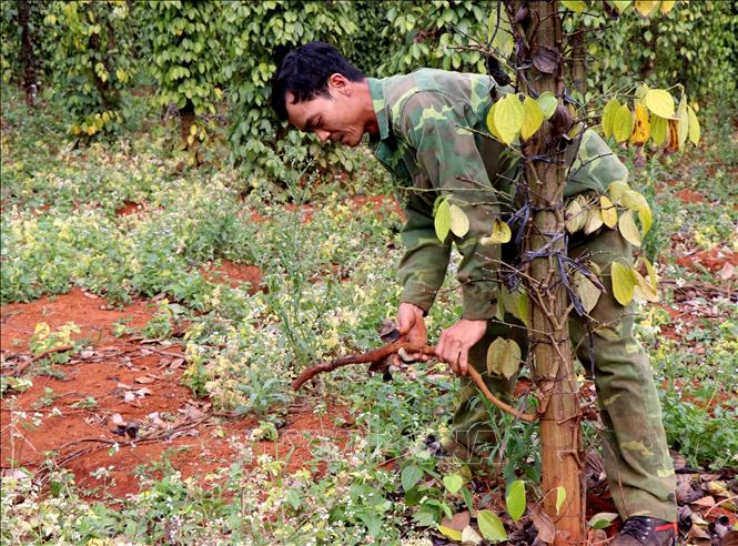 Nông dân “bất lực” nhìn hồ tiêu chết dần chết mòn. Ảnh: Hưng Thịnh/TTXVN