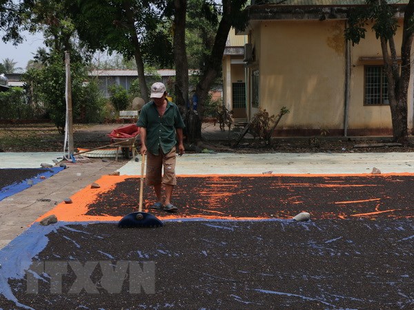 Nông dân huyện Bù Đốp, Bình Phước đang phơi hạt tiêu.
