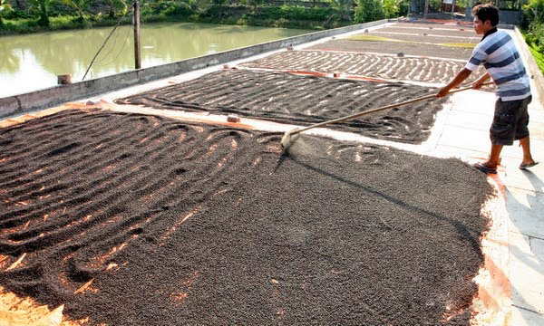 Nhà nông phơi hạt tiêu trong mùa thu hoạch